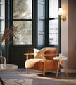 Inspired by the allure of a pre-war classic beauty, the Katerina collection boasts slender glass arms that gracefully branch out from the metal frame. Available in chandelier, foyer, and wall sconce versions and topped with fabric shades, Katerina’s aesthetic also complements classic coastal décor. There is an additional ability to use the fixture without the shade. Available in Brushed Nickel and Rubbed Brass.