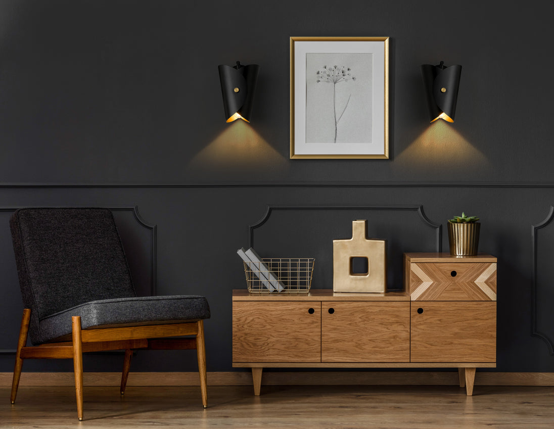 Choose your style! Facing up or down to direct light exactly where needed, the Salone collection offers modern flair in a design that can suit a wide variety of décor styles. A stylish metal button serves as a charming accent, in the same finish as the fixture in Matte Black or White or use the optional gold button to add another design layer to this highly stylish fixture.