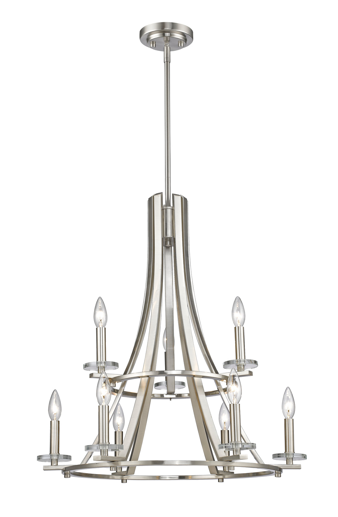 Graceful sweeping arms leading to classic candelabras sitting atop crystal bobeches. A classic design contemporized with clean lines and finished in brushed nickel.