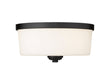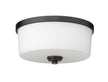 Bathe your surroundings in the graceful illumination that radiates from this three-light flush mount ceiling fixture. Stylishly simple, it boasts a round, matte black frame that creates a striking contrast with its delicate, matte opal shade. This transitional ceiling light is especially ideal for a bedroom, hallway, kitchen, or living room.