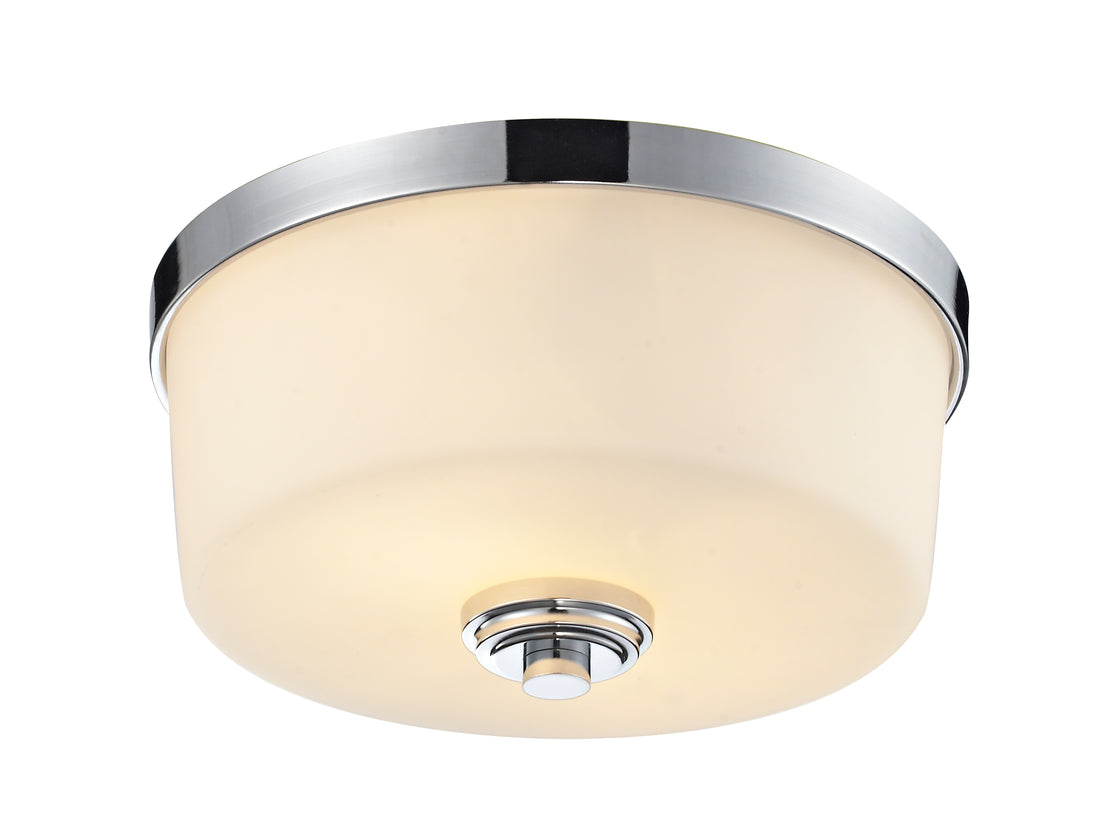 The simple detailing and clean lines of the Lamina flush mount is finished in chrome and paired with matte opal glass shade.
