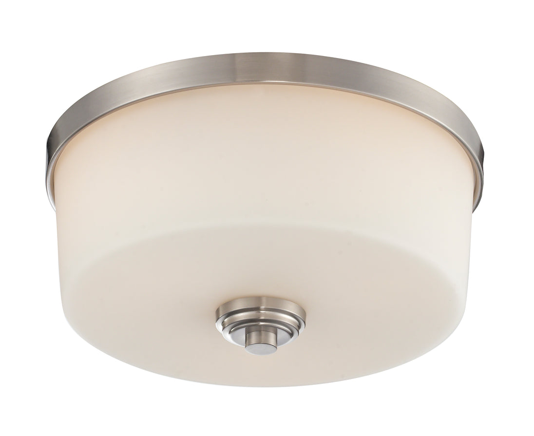 The simple detailing and clean lines of the Lamina flush mount is finished in brushed nickel and paired with matte opal glass shade.