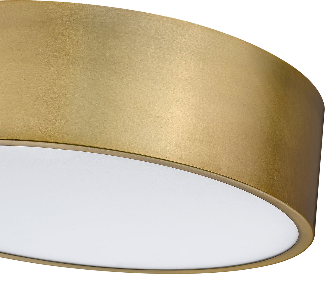 Take a page from casual style by illuminating a modern space with the Harley flushmount metal drum ceiling light. This four-light ceiling light offers plenty of lighting in a kitchen, dining area, or main living space, maintaining an easy style. With a warm rubbed brass finish steel shade, it’s versatile and dynamic.