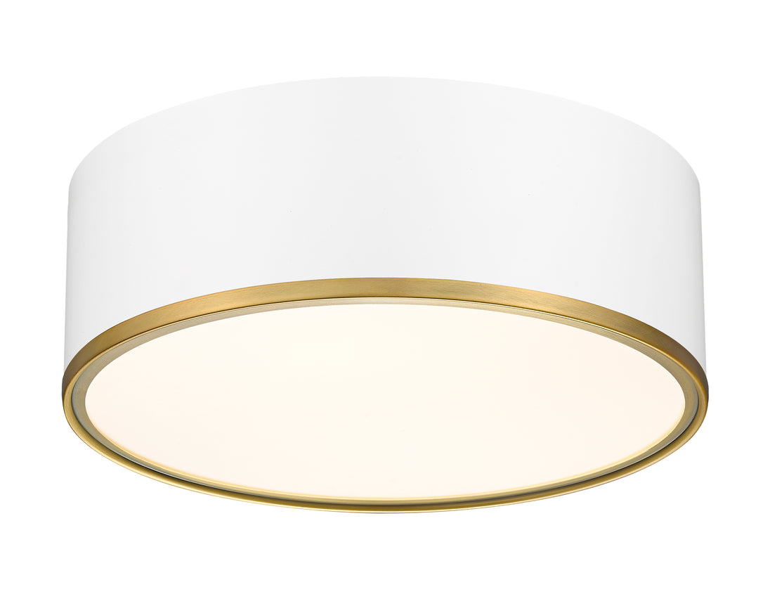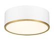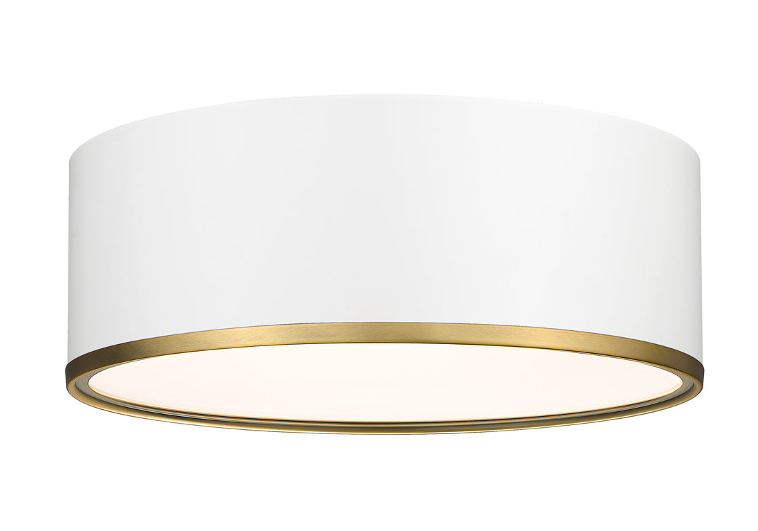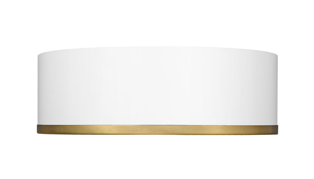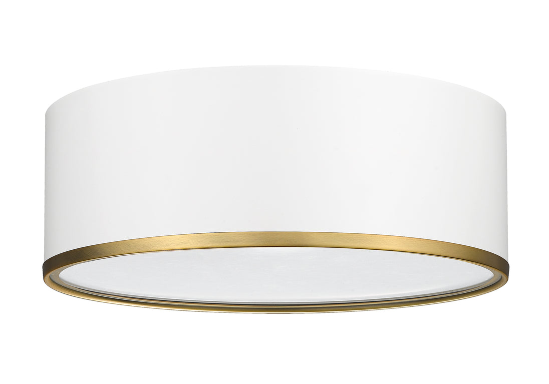Introducing a three-light flush mount in matte white with rubbed brass trim to inspire your contemporary living space. Crafted from steel, this flush mount light is perfect or illuminating a small foyer, hallways, or your home office.