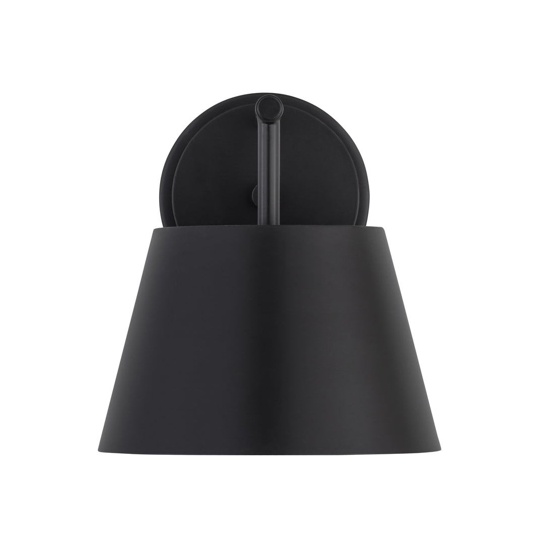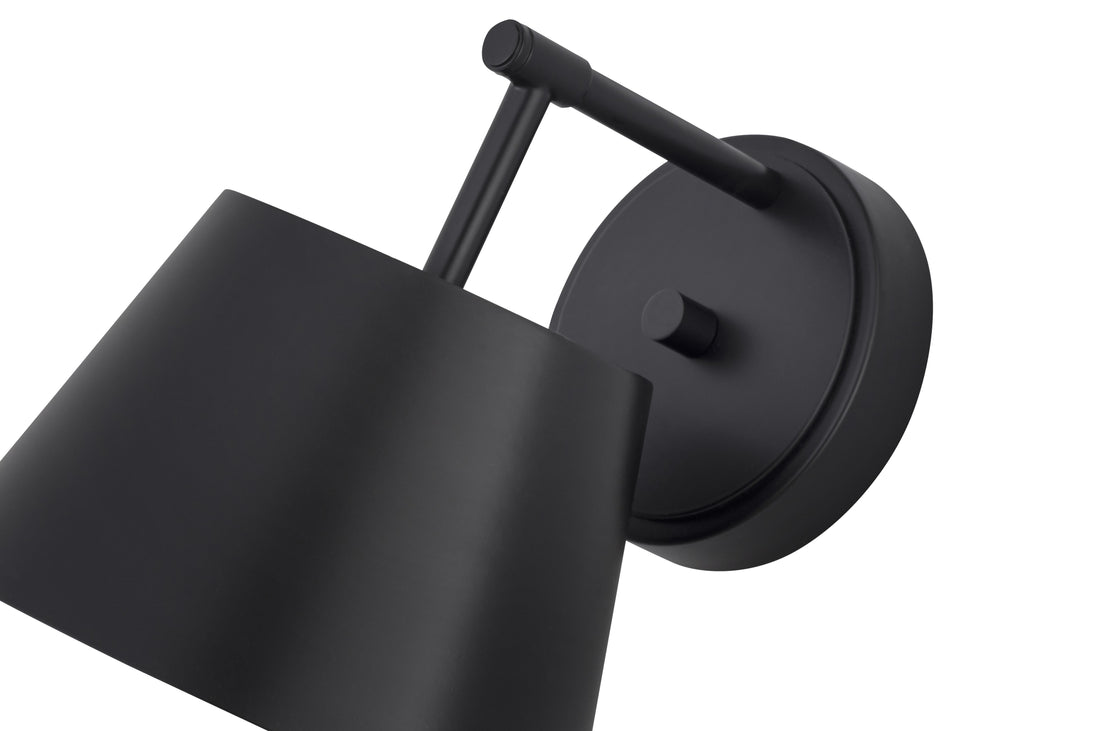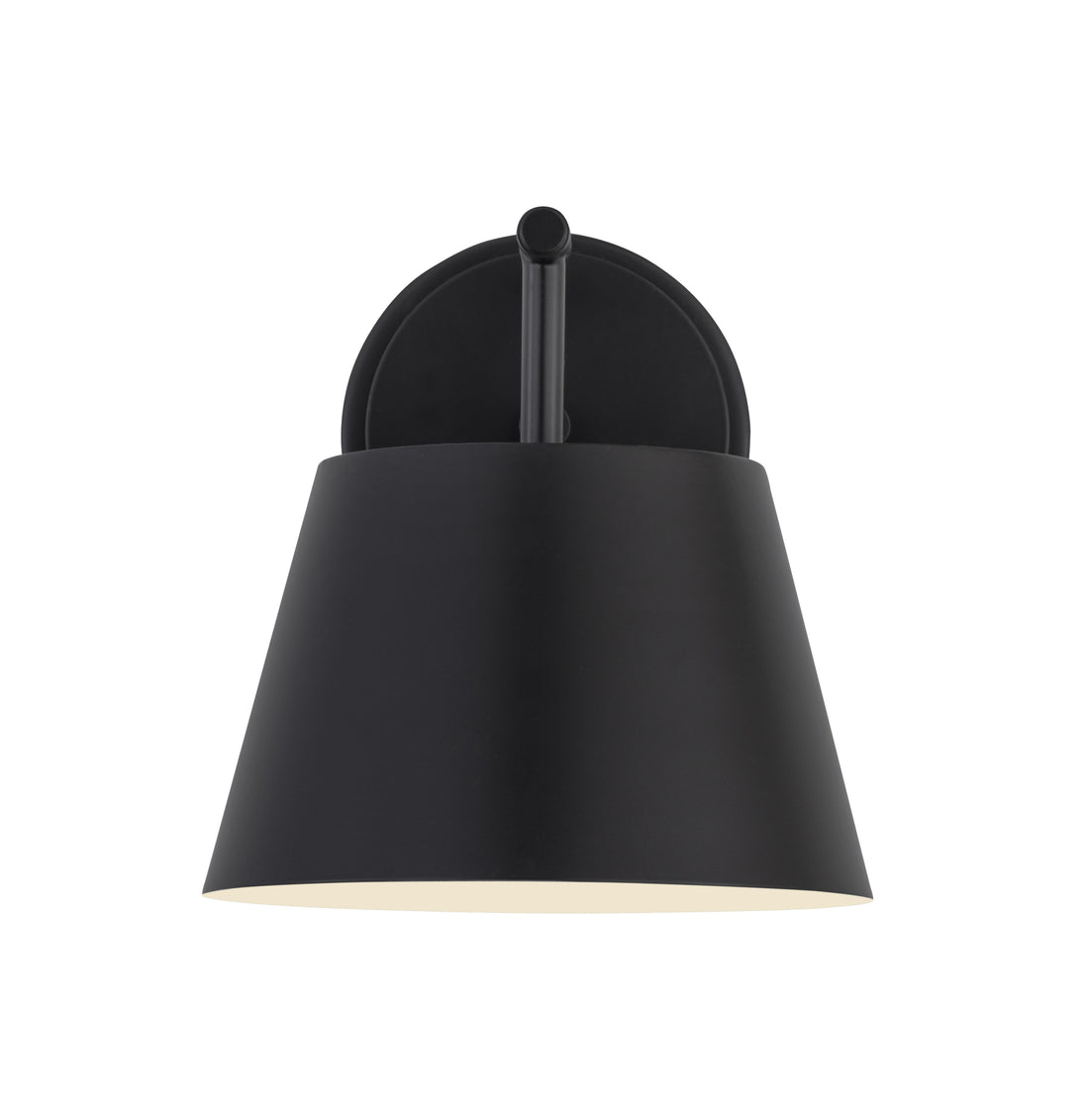 A modern empire shade is crafted in metal and showcases a white interior for bright direct illumination from this modern one-light wall sconce. The stylish look is eminently versatile, offering a fresh, cool matte black finish in living rooms, halls, bedrooms and beyond.