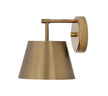 A modern empire shade is crafted in metal and showcases a white interior for bright direct illumination from this modern one-light wall sconce. The stylish look is eminently versatile, offering a refined rubbed brass finish in living rooms, halls, bedrooms and beyond.