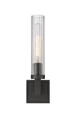 Accent lighting borrows from a sophisticated aesthetic shaping this tasteful one-light wall sconce, a perfect choice for custom contemporary spaces. The Beau sconce offers a clean linear silhouette with a tall tubular fluted glass shade mounted to a minimalist frame fashioned of bronze finish steel. Add a hint of upscale flavor to a hallway, bath space, or bedroom.