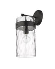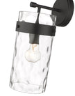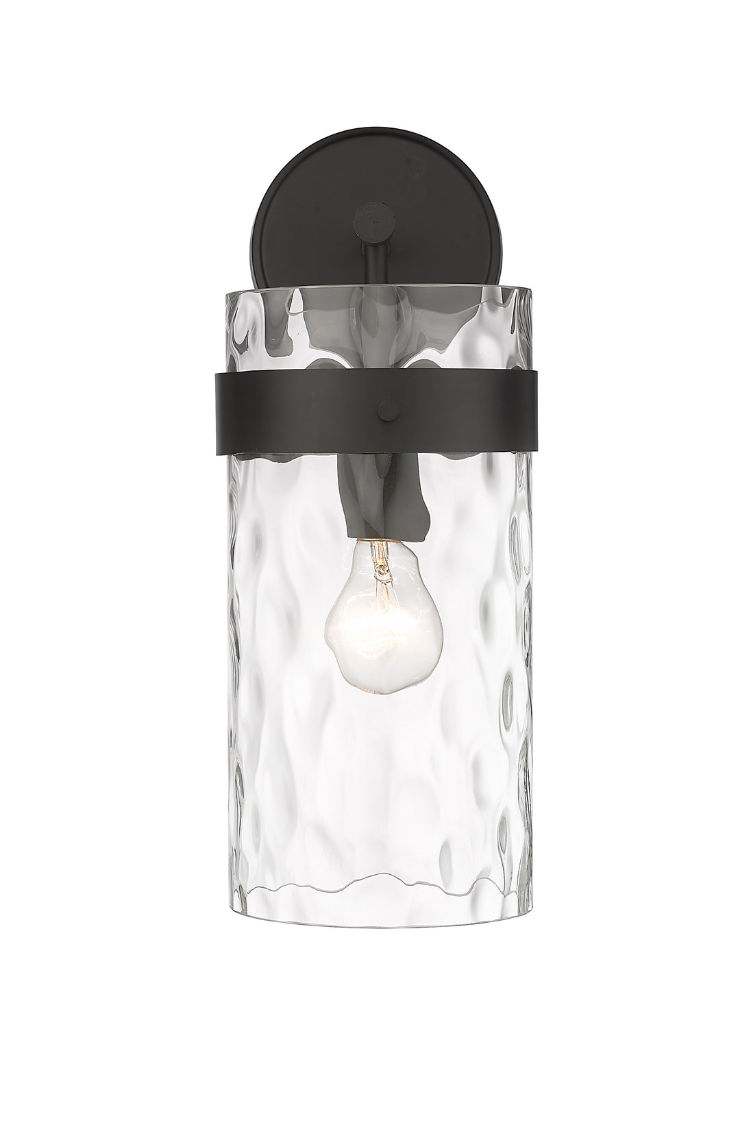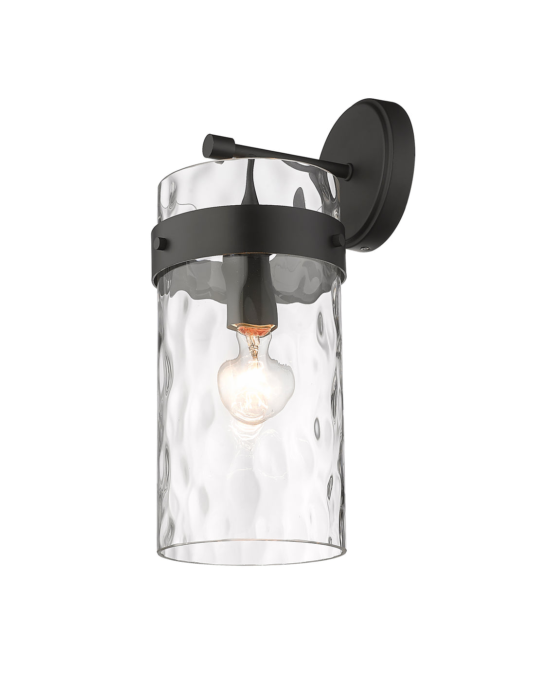 Illuminate dark hallways and bathrooms with this wall sconce. This fixture flaunts a cylindrical glass shade with a romantic ripple texture. Steel construction is enhanced with a matte black finish.