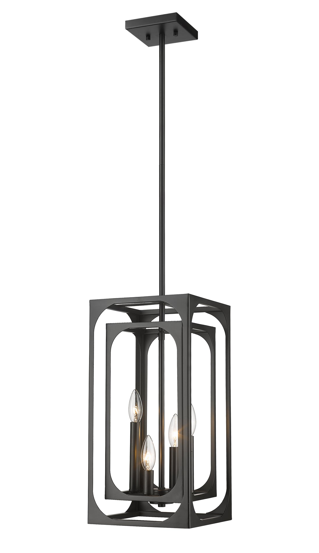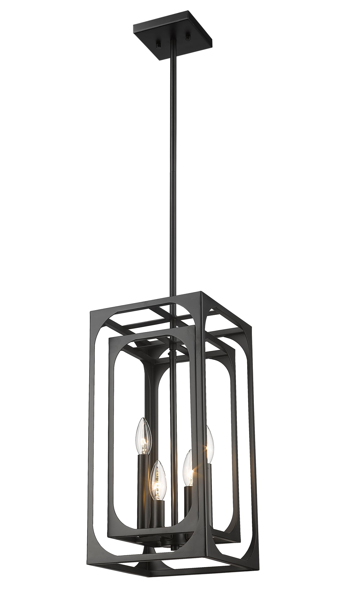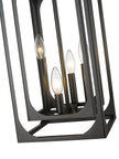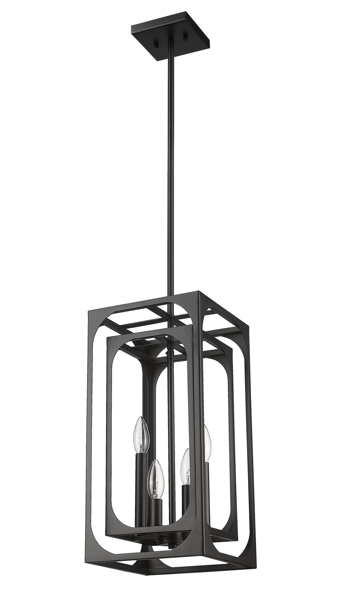 Breathe new life into a tasteful living space blending modern and farmhouse style elements. The Easton metal four-light chandelier creates a mixed motif with candelabra bulb mounts set in a graduated arrangement, centered in full view thanks to a dual-layered openwork matte black finish metal frame. A bold version of minimalism reflects with a sought-after effect, accomplishing its objective with an extraordinary blend of dramatic finish and minimalist construction.