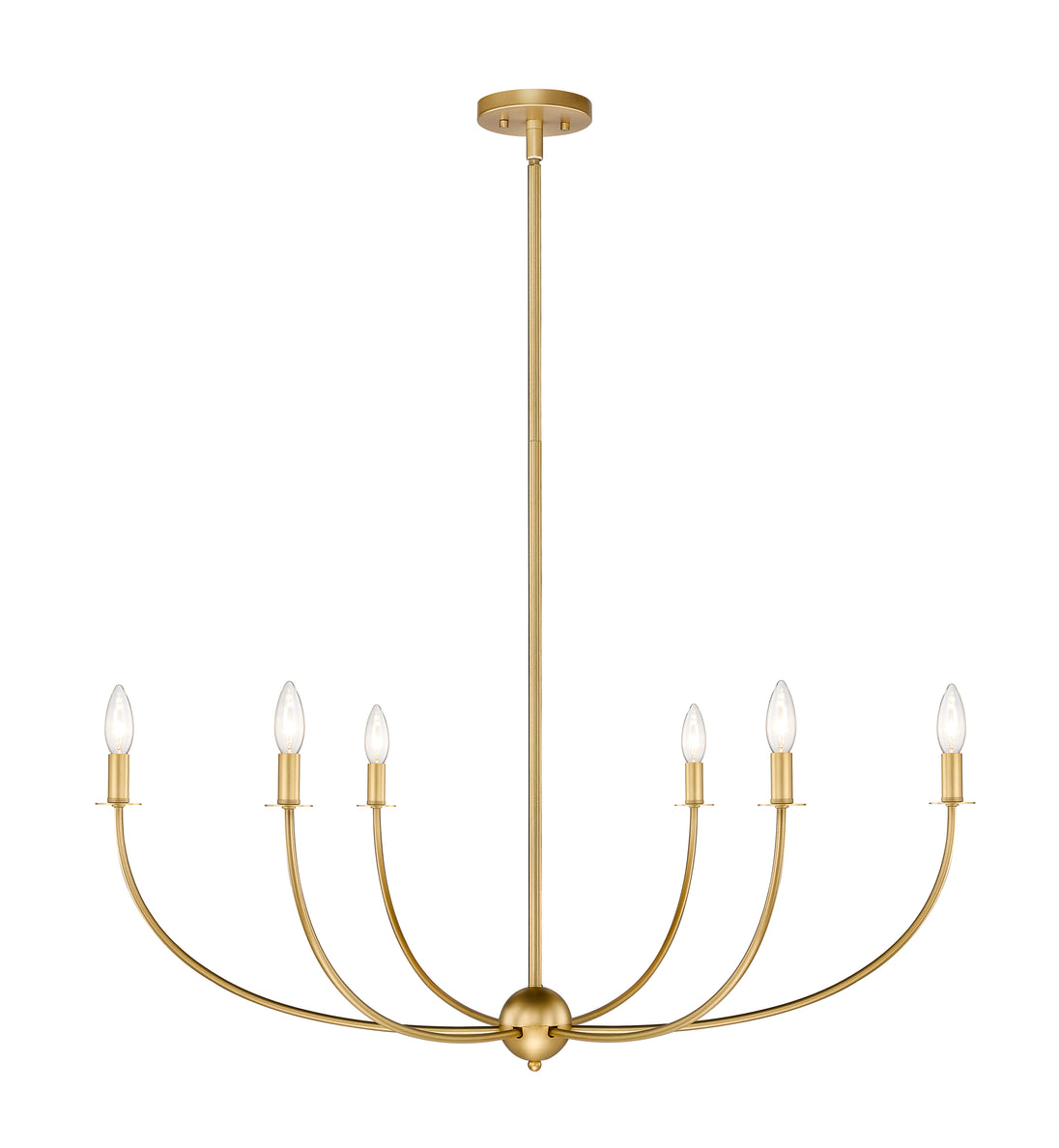 Feminine lines in a slender silhouette define the Shannon chandelier, which will beautifully illuminate a grand dining room, great room, banquette, or kitchen island while subtly blending in with the overall décor. Available in three diameters of 32”, 42” and 62” as well as three trend on finishes of Rubbed Brass, Matte Black or Brushed Nickel.