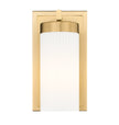 Warm modern gold finish creates a refined, sophisticated look for a contemporary one-light wall sconce. Its strong, rectangular wall plate sets the tone, while a cylinder of frosted white glass ensures diffused illumination. It's a striking fixture to create ambiance in your entry or living room.