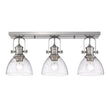 The Yep by Golden Lighting Hines 3-light Semi-Flush Mount combines vintage-inspired design with a Pewter finish and a glass shade, creating a cozy glow perfect for living areas.