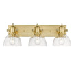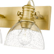 The Yep by Golden Lighting Hines 3-light Vanity in Brushed Champagne Brass combines modern sophistication with a brushed champagne brass finish and a seeded glass shade, creating a chic glow that elevates bathrooms.