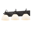 The Yep by Golden Lighting Hines 3-light Vanity combines vintage-inspired design with Rubbed Bronze finish and an Opal Glass shade, creating a soft glow that elevates bathrooms.