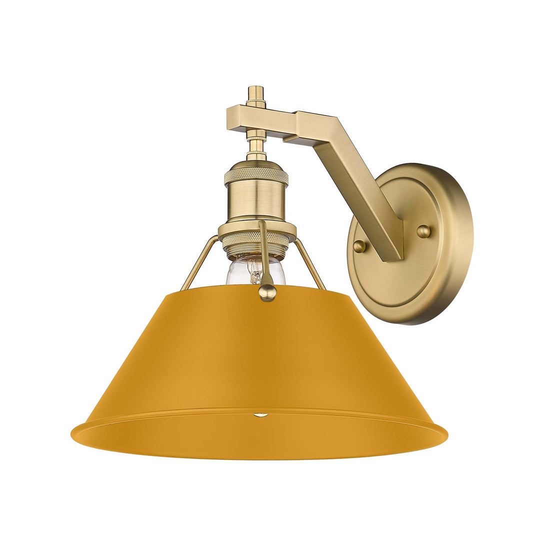 The Yep by Golden Lighting Orwell 1-light Wall Sconce blends industrial flair with Brushed Champagne Brass and an Auric Yellow metal shade, creating a vibrant atmosphere for any room.