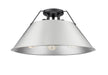 Bring industrial elegance into your home with the Yep by Golden Lighting Orwell 3-light Flush Mount. Featuring a metal shade and a matte black frame, it creates a welcoming atmosphere. The pewter metal shade diffuses light beautifully with its warm silver-grey hue, offering a soft and classic touch to your space. The matte black finish epitomizes clean, modern style, providing a timeless and smooth aesthetic that complements various decor styles, from minimalist to contemporary. This fixture is ideal for low ceilings in hallways, closets, laundry areas, and bathrooms, enhancing damp-rated environments with its versatility. Installation is straightforward, accommodating covered and semi-enclosed spaces with occasional moisture. Overall dimensions measure 18.75"W x 9.25"H x 18.75"D, and it requires three E26 medium base bulbs (not included), with a maximum wattage of 60 per bulb. Elevate your space with statement lighting that blends quality and style.