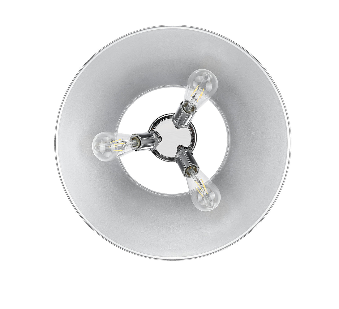 Bring industrial elegance into your home with the Yep by Golden Lighting Orwell 3-light Flush Mount. Featuring a metal shade and a chrome frame, it creates a welcoming atmosphere in compact spaces. The pewter electroplated shade adds a soft, classic warmth that beautifully diffuses light, providing an elegant non-glare glow. Brilliant and timeless, our Polished Chrome finish offers a stunning high-shine gleam, seamlessly integrating into various styles from modern to traditional. Ideal for low ceilings in hallways, closets, laundry areas, bathrooms, and more, this fixture is Damp Location Rated for spaces with occasional moisture. Requires no special installation and is compatible with standard E26 Medium base bulbs. Dimensions are 18.75"W x 9.25"H x 18.75"D, and it requires 3 bulbs (not included). Elevate your space with stylish design and quality craftsmanship that enhances your home’s aesthetic.