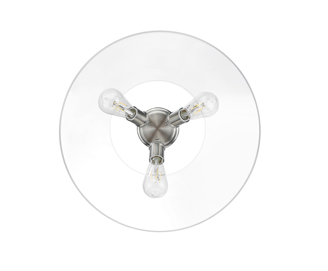 Elevate your space with the industrial elegance of the Yep by Golden Lighting Orwell 3-light Flush Mount. Featuring a glass shade and a pewter frame, it creates a welcoming atmosphere in your home. The clear glass shade offers brilliant, unobstructed light, showcasing its polished finish, which complements various styles from modern farmhouse to industrial. Crafted with a durable electroplating process, the pewter finish provides a soft classic touch with a medium-grey hue and subtle warmth, creating an elegant glow that enhances any space. Ideal for low ceilings in hallways, closets, laundry areas, bathrooms, and more, this fixture is damp location rated, suitable for covered and semi-enclosed spaces with occasional moisture. Overall Dimensions: 18.75"W x 9.25"H x 18.75"D. Requires 3 E26 Medium base bulbs (not included), with a max wattage of 60 per bulb. Bring both functionality and style to your home with this stunning flush mount light that promises quality and timeless appeal.