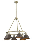 The Yep by Golden Lighting Orwell 6-light Chandelier combines industrial design with Aged Brass and a metal shade, creating a warm glow that elevates dining rooms and foyers.