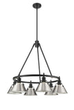 The Yep by Golden Lighting Orwell 6-light Chandelier merges industrial flair with matte black finish and a pewter shade, casting a warm glow in dining and living spaces.