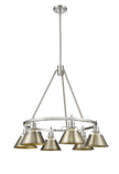 The Yep by Golden Lighting Orwell 6-light Chandelier combines industrial design with pewter finish and a metal shade, creating an inviting glow that elevates dining rooms and foyers.