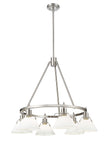 Bring industrial elegance into your home with the Yep by Golden Lighting Orwell 6-light Chandelier. Featuring an opal glass shade and a pewter frame, it creates a welcoming atmosphere. The opal glass shade features a milky, translucent white color with a smooth, satin-matte finish, designed to diffuse light evenly for a soft, glare-free glow. This timeless and elegant shade adds a luminous quality to any room. Our pewter finish offers a soft and classic alternative to brighter silver tones, crafted with a durable electroplating process that gives it an understated and timeless appeal. Versatile and stylish, this chandelier is perfect for making a grand impression in dining rooms, foyers, or adding a touch of classic elegance to bedrooms and living spaces. It is dry location rated, ideal for indoor spaces not subject to moisture, and is designed with adjustable height features suitable for sloped ceilings, allowing you to customize the hanging length from 21.25" to 63.25". The overall dimensions are 29"W x 20.38"H x 29"D, and it requires 6 E26 medium base bulbs (not included) with a maximum wattage of 60 watts per bulb. Experience lifestyle appeal and quality craftsmanship with this exquisite chandelier, perfect for those who appreciate classic design and contemporary functionality.