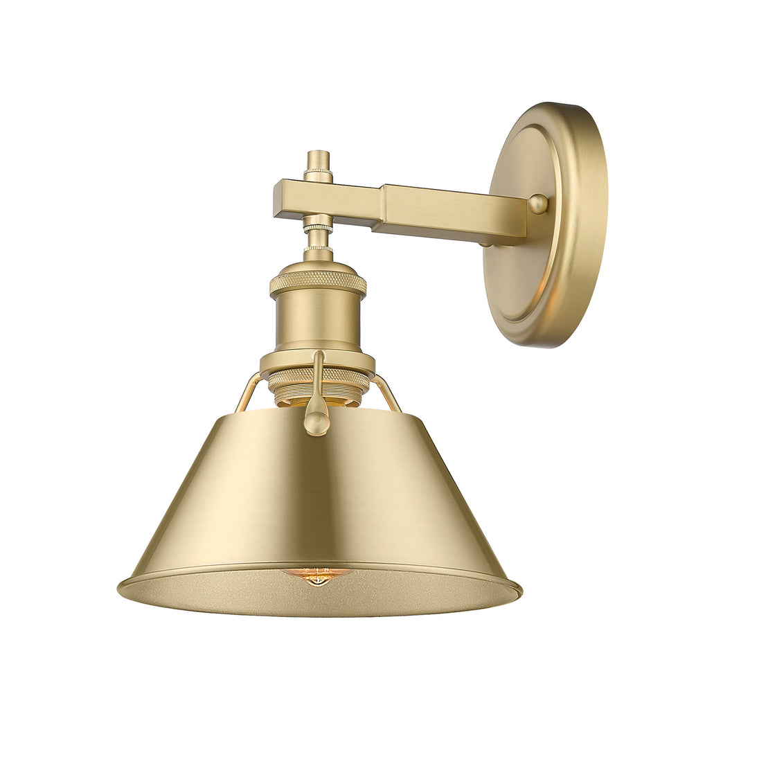 The Yep by Golden Lighting Orwell 1-light Vanity combines industrial design with Brushed Champagne Brass, creating a warm illumination that elevates bathrooms.
