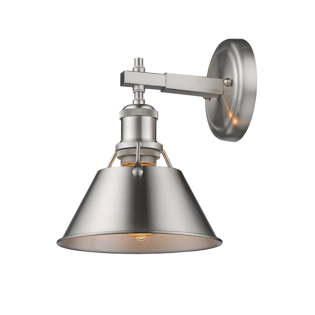 The Yep by Golden Lighting Orwell 1-light Vanity combines industrial design with Pewter and a metal shade, creating a warm, inviting glow that elevates bathrooms.