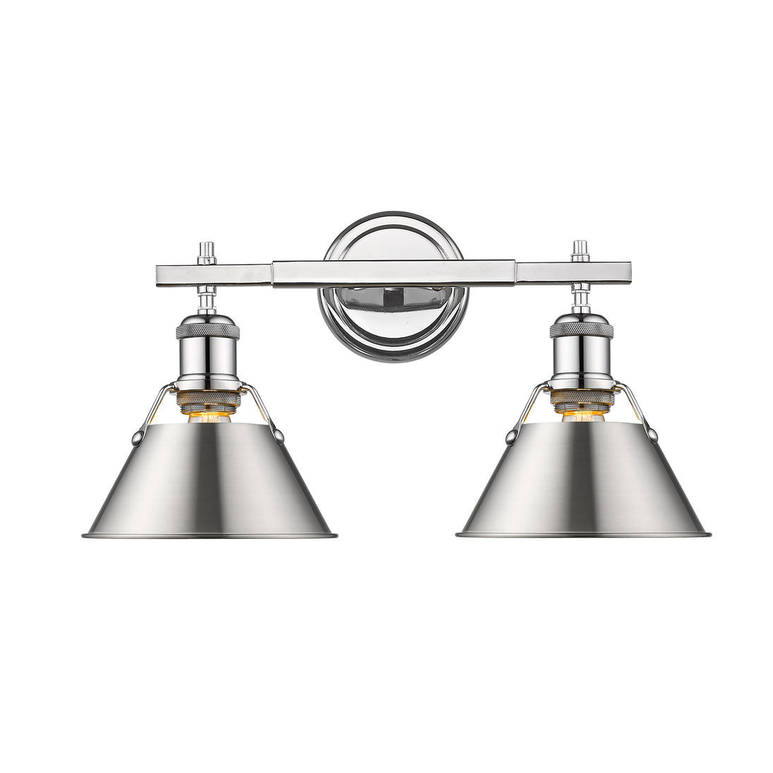 The Yep by Golden Lighting Orwell 2-light Vanity combines industrial design with Chrome and a Pewter shade, creating a stylish illumination that enhances bathrooms.