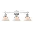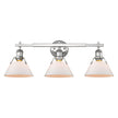The Yep by Golden Lighting Orwell 3-light Vanity combines industrial charm with a polished Chrome finish and an opal glass shade, creating a soft glow that elevates bathrooms.