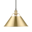 The Yep by Golden Lighting Orwell 1-light 14in Pendant in Brushed Champagne Brass combines modern industrial design with sophisticated illumination, enhancing your room's aesthetics.