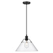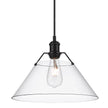 The Yep by Golden Lighting Orwell 1-light 14in Pendant combines industrial design with a Matte Black finish and a Clear Glass shade, creating focused illumination that elevates kitchens and dining rooms.