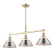 The Yep by Golden Lighting Orwell 3-light Island Light combines industrial design with Brushed Champagne Brass and a metal shade, creating a modern ambiance that elevates kitchen islands.