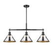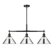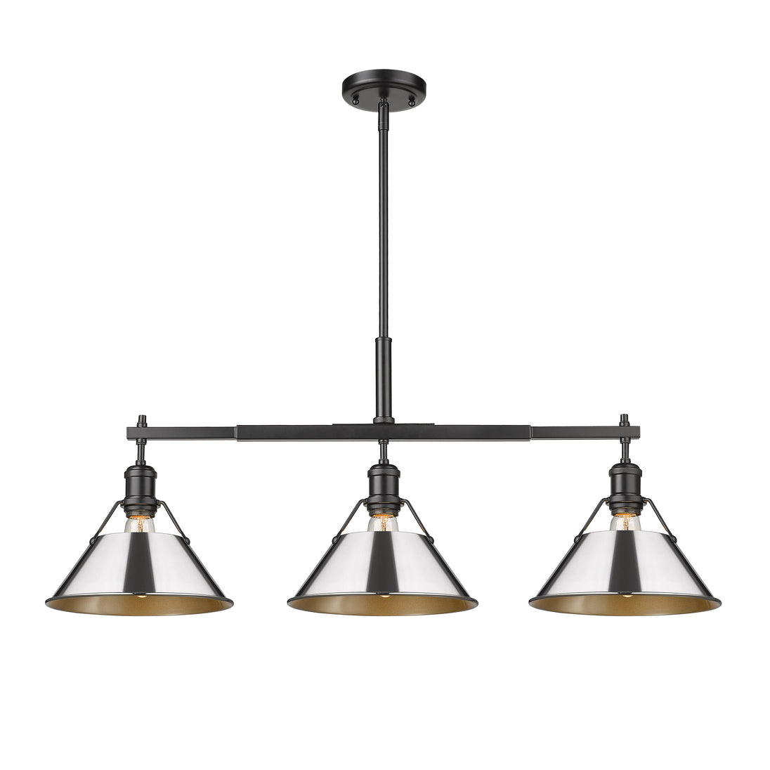 The Yep by Golden Lighting Orwell 3-light Island Light in Matte Black and Chrome shade combines industrial design with a matte black finish and a metal shade, creating a sophisticated illumination that elevates kitchen islands.