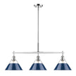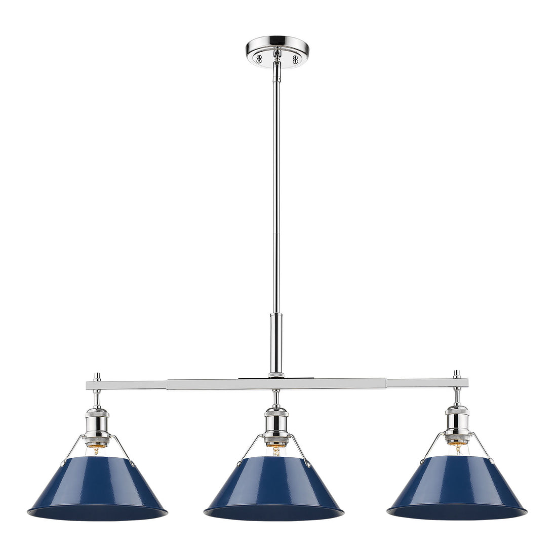 The Yep by Golden Lighting Orwell 3-light Island Light blends industrial design with a chrome finish and a navy blue shade, perfect for illuminating kitchen islands.
