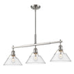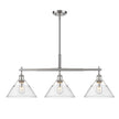 The Yep by Golden Lighting Orwell 3-light Island Light combines industrial design with pewter finish and clear glass shade, creating brilliant illumination that elevates kitchen islands.