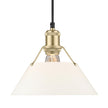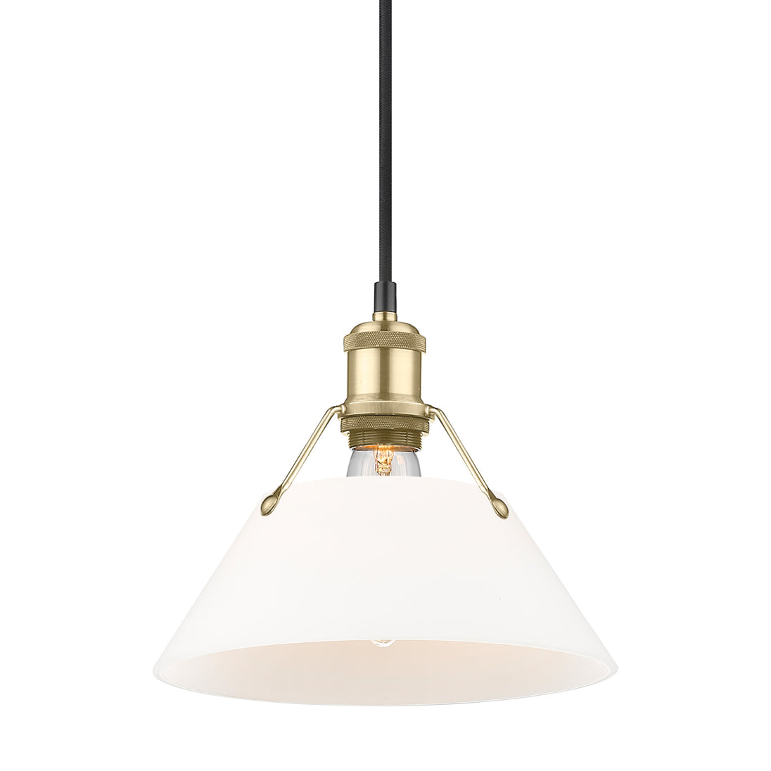 Bring industrial elegance into your home with the Yep by Golden Lighting Orwell 1-light 10in Pendant. Featuring a glass shade and a Brushed Champagne Brass frame, it creates a welcoming atmosphere. The opal glass shade features a milky, translucent quality that diffuses light evenly, providing a soft, glare-free glow. Its timeless and elegant design adds a touch of sophistication to any interior décor. The Brushed Champagne Brass finish is achieved through a durable electroplating process and offers a subtle, refined texture that reflects light beautifully. This finish adds quiet luxury and contemporary style to your space. Perfect for focused yet decorative illumination, the pendant is ideal for kitchens, dining rooms, and entryways. This fixture is damp location rated, making it suitable for covered spaces with occasional moisture. It’s also sloped-ceiling compatible and features adjustable height from 16" to 130" to fit your space needs. Overall Dimensions: 10"W x 8.5"H x 10"D. Requires 1 E26 Medium base bulb (not included) with a maximum wattage of 100. Elevate your aesthetic with this stunning piece, designed for quality and style.