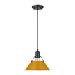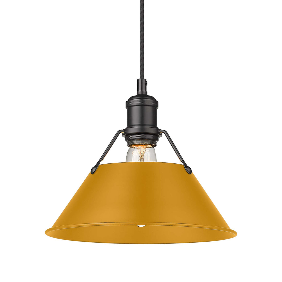 The Yep by Golden Lighting Orwell 1-light 10in Pendant showcases industrial design with matte black and an auric yellow metal shade, adding a cheerful touch to dining rooms and kitchens.
