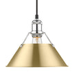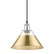 Bring industrial elegance into your home with the Yep by Golden Lighting Orwell 1-light 10in Pendant. Featuring a metal shade and a chrome frame, it creates a welcoming atmosphere. The striking metal shade showcases a Brushed Champagne Brass finish, blending muted gold with a soft satin luster, perfect for a sophisticated lighting experience that reflects modern luxury. This pendant offers a Polished Chrome finish, delivering a crisp look that enhances various design themes. Its resilient design is easy to maintain, perfect for daily use. Ideal for kitchens, dining rooms, or entryways, the pendant is damp location rated for versatile installation. It features adjustable height options from 16" to 130" for tailored fitting. Overall dimensions measure 10"W x 8.5"H x 10"D, and it operates with 1 E26 Medium base bulb (not included), supporting a maximum wattage of 100. Elevate your space with this stylish light fixture, celebrating the union of art and functionality in your home decor.