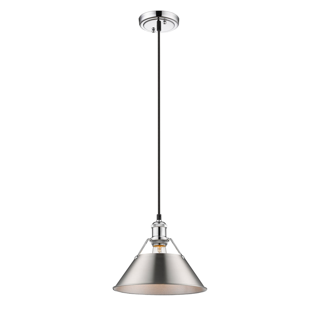 The Yep by Golden Lighting Orwell 1-light 10in Pendant combines industrial design with chrome and a metal shade, creating a warm, inviting glow that enhances dining rooms and bathrooms.