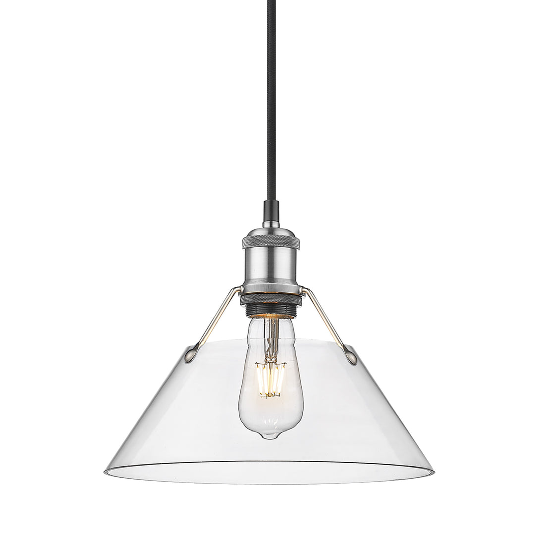 The Yep by Golden Lighting Orwell 1-light 10in Pendant combines industrial design with pewter and a glass shade, creating bright illumination that elevates entryways and bedrooms.