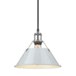 The Yep by Golden Lighting Orwell 1-light 10in Pendant combines industrial design with pewter and a metal shade, creating a serene ambiance that elevates bedrooms and dining areas.