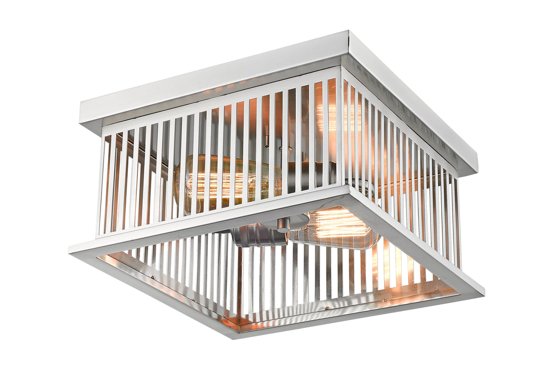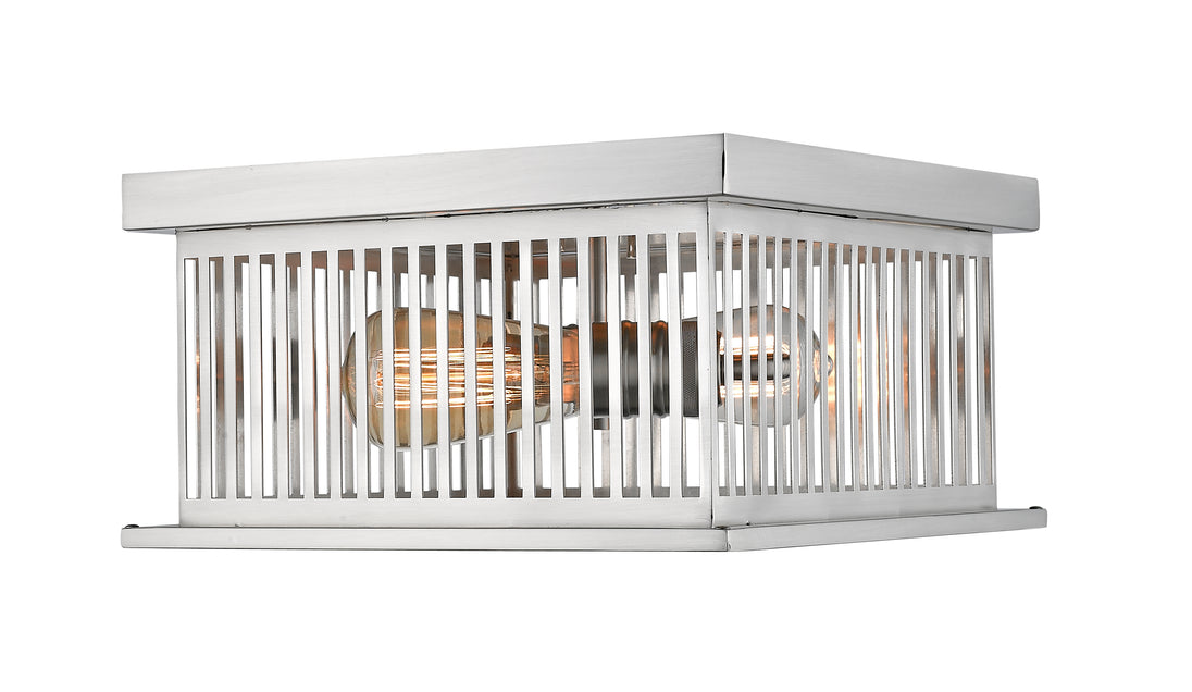 Capture the architectural character of industrial fare with this two-light flush mount ceiling light. A linear grill design in brushed nickel finish steel brings a geometric twist to soft vintage décor.