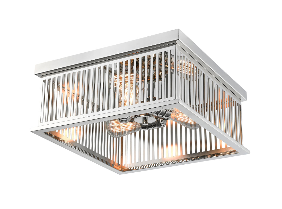 This smartly styled fixture combines a beloved industrial flavor with geometric fare to produce a truly versatile décor element. Gorgeous polished nickel finish steel and vintage-style bulbs offer an eye-catching aesthetic that captures deserved attention.