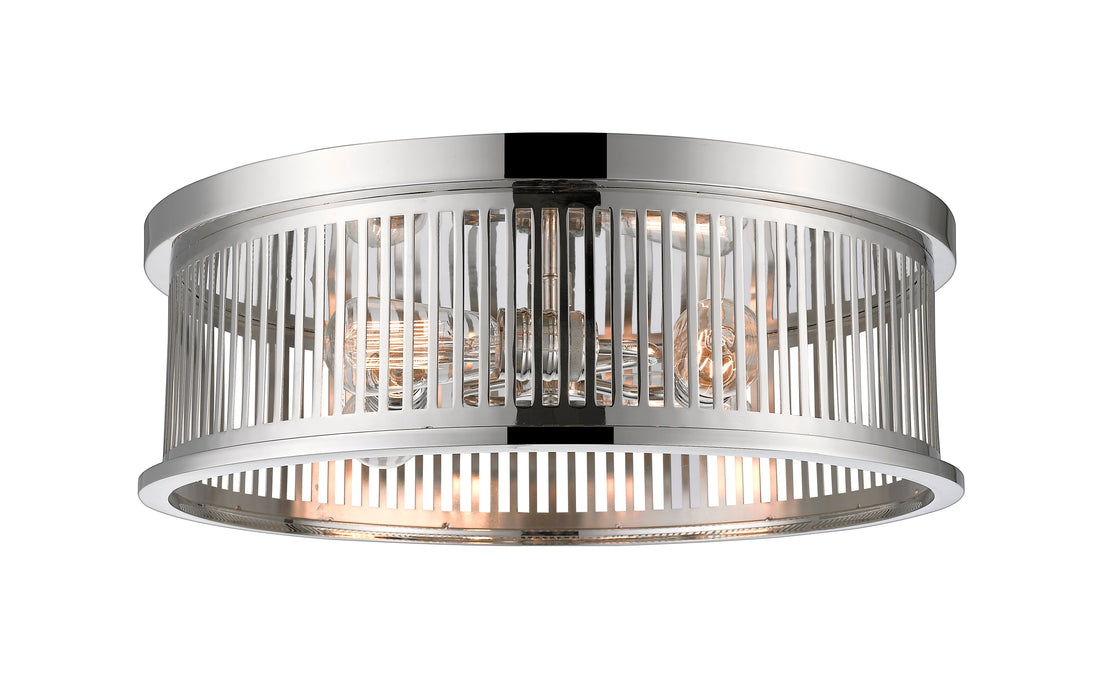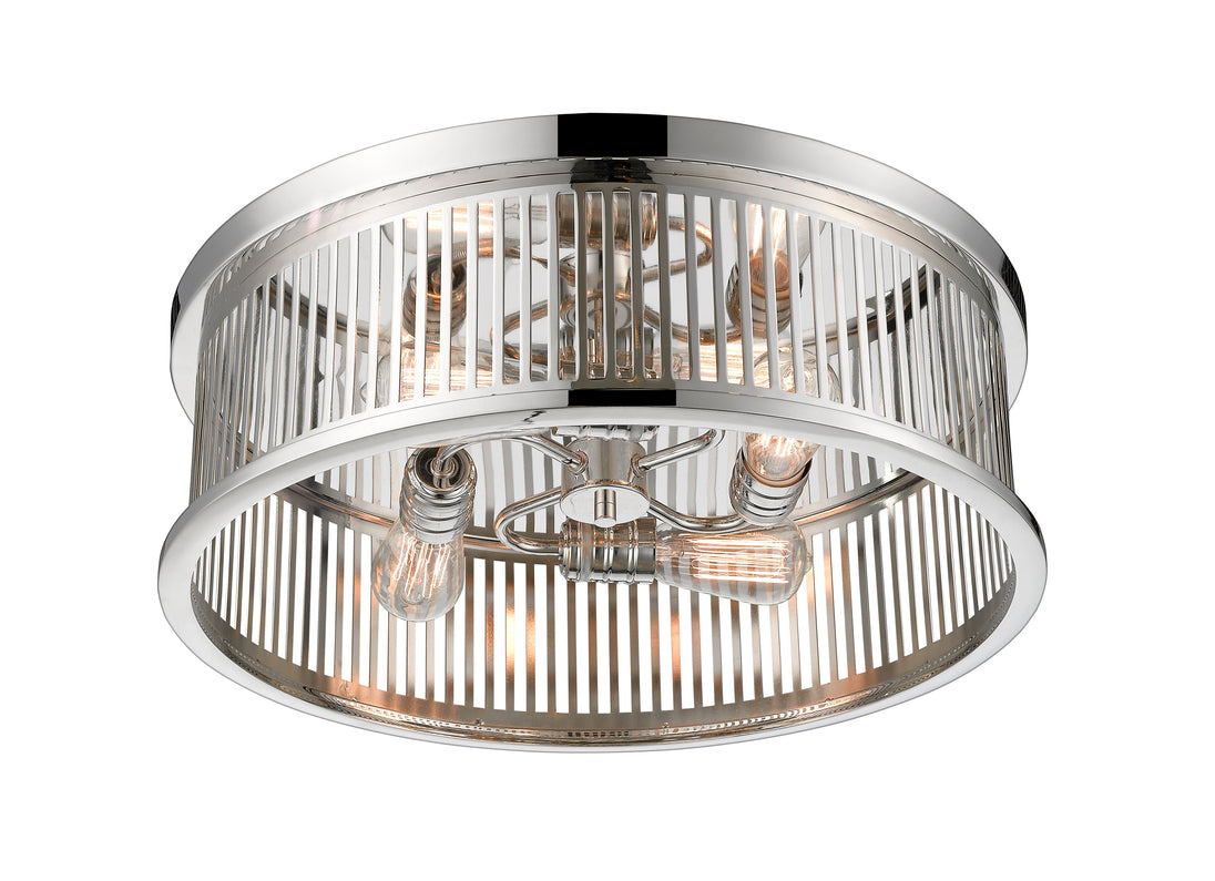 Blend sophistication with charm and urban industrial style, and add this four-light flush mount ceiling fixture to a central space. Designed to impress, its linear grid theme and ornate vintage bulbs create a perfect match.