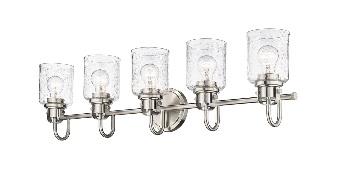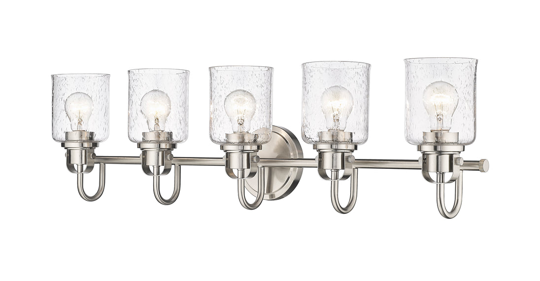 The industrial-inspired Kinsley Collection of pendant and vanity fixtures uses simple, artisanal detailing to create a timeless statement. The vintage-influenced craftmanship is finished in a choice of Brushed Nickel, Matte Black, Chrome, and Heritage Gold.