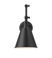 Mixed motifs offer an exquisite form of industrial style in a one-light wall sconce offering the perfect blend of glam and industrial design aesthetics. Constructed of bold matte black steel framing and a matching steel conical shade, it delivers utility in an adjustable configuration making it easy to achieve customizable lighting levels.Install through hard-wiring or install cord-and-plug mounting to allow movement from space to space.