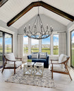With a nearly imperceptible feminine flourish, our Arabella Collection provides ample ambient illumination for living rooms and dining areas without distracting from the rest of the décor. Its slim, organically inspired frame boasts a ribbon design which supports the dual arm candelabra to create an effect of visual movement. The Matte Black finish subtly anchors the space. Available in four sizes with matching sconces.