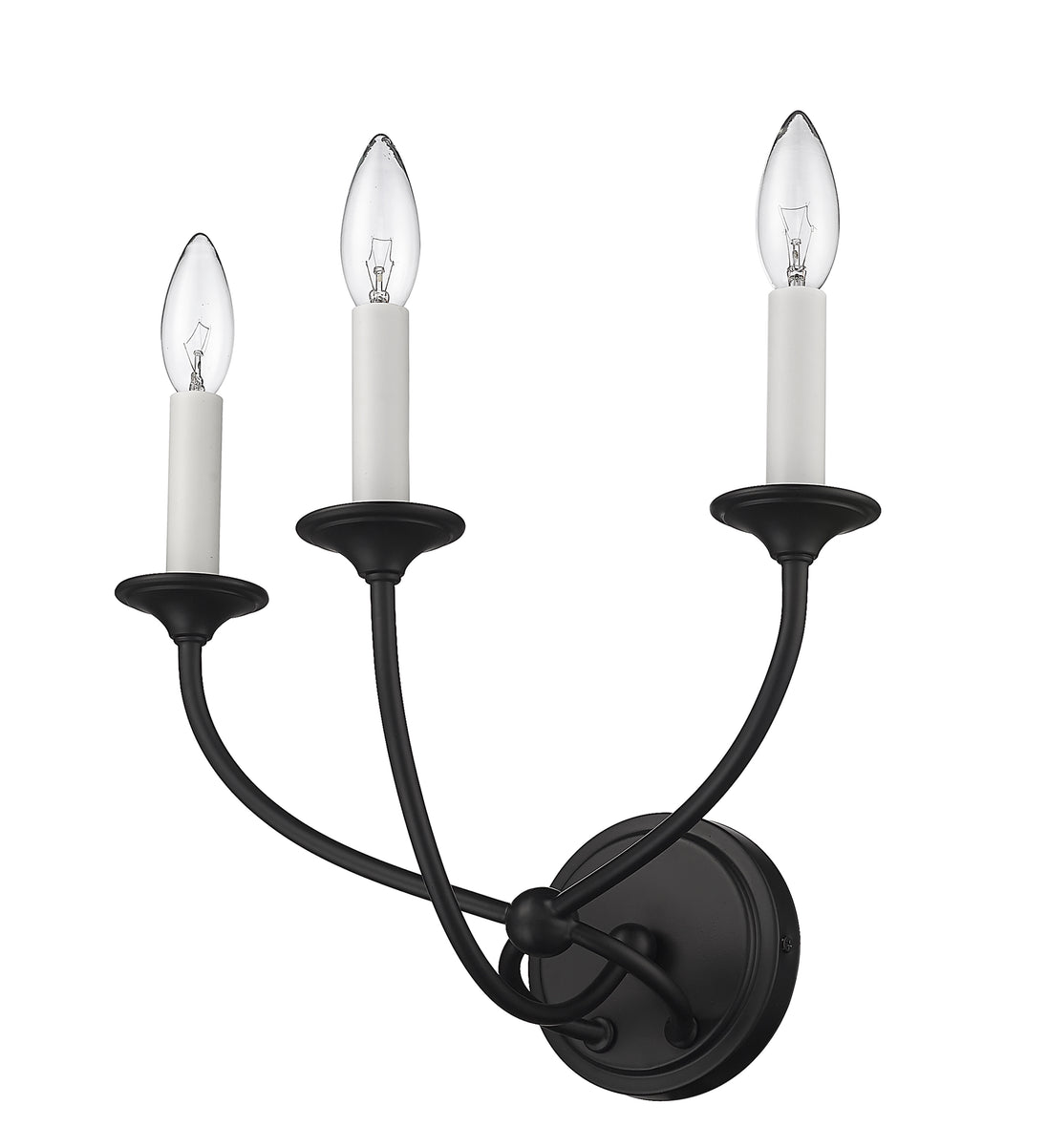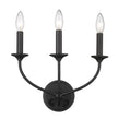 Create a theatre-inspired look in a traditional or transitional space with this captivating three-light wall sconce. Delivering accent lighting in a living room, bedroom, or hallway, this tasteful fixture focuses on symmetry and proportion with a black matte finish steel frame and wall plate, and side-by-side candelabra mounts that soften its bold finish.