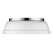 The Yep by Golden Lighting Duncan 2-light Flush Mount integrates modern design with polished chrome and a matte white metal shade, offering soft illumination to kitchens and bathrooms.